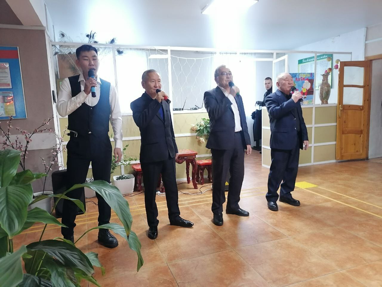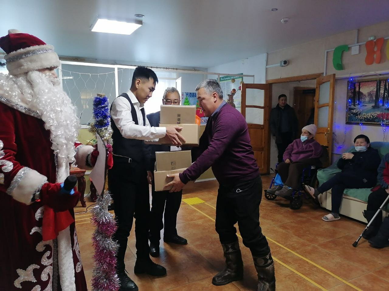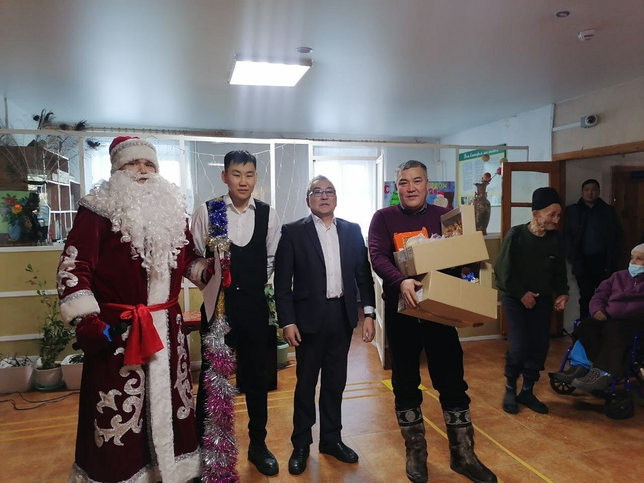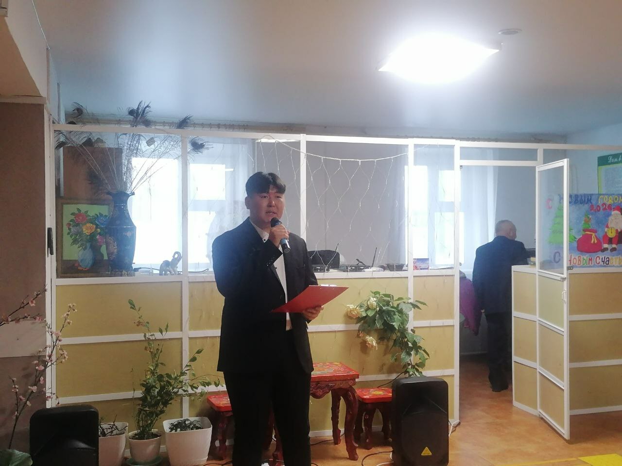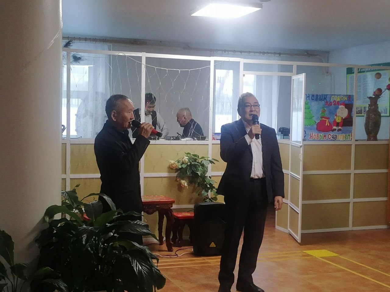 Гости устроили праздничный концерт с песнями, стихами и словами благодарности в адрес ветеранов вместе с Дедом Морозом.
