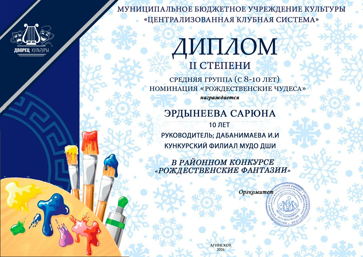 2. Дамбаева Сарюна 8 лет, 8 лет, Кункурский филиал МУДО ДШИ им.К.И.Базарсадаева. Диплом 2 степени
