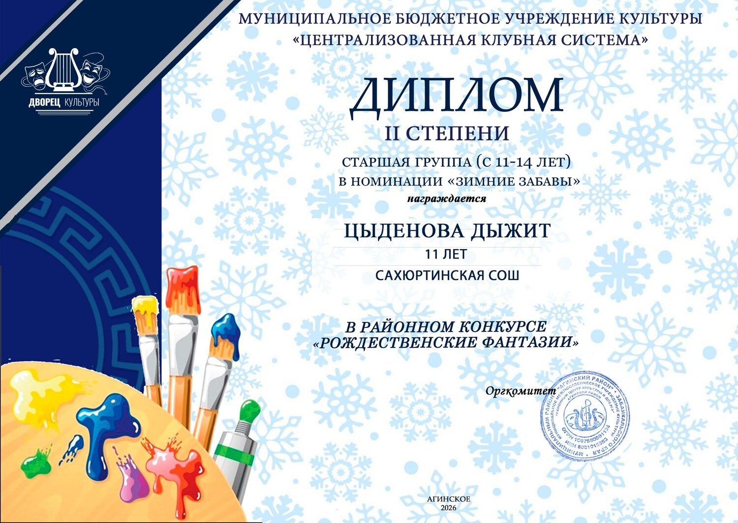 2.Цыдыпова Туяна, 12 лет, Сахюртинская СОШ. Диплом 3 степени