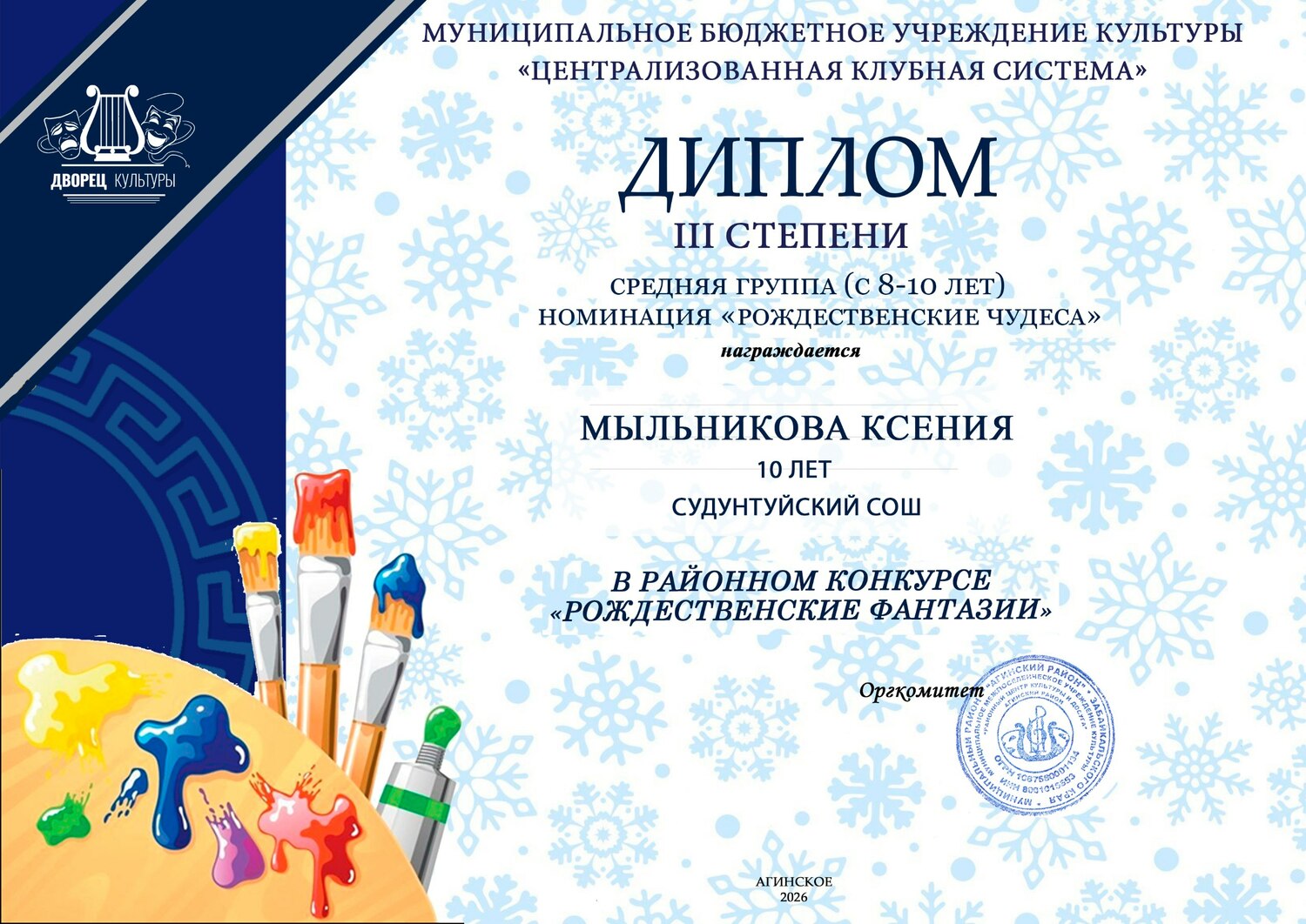 5.Мыльникова Ксения, 10 лет, 4 кл., СудСОШ. Диплом 3 степени