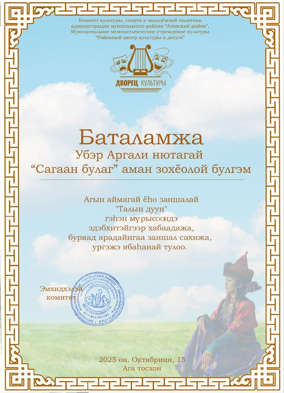 Фольклорные коллективы (носители бурятского языка) готовятся к окружному конкурсу "Талын дуун" который пройдет 27 октября 2025 года в п. Агинское.