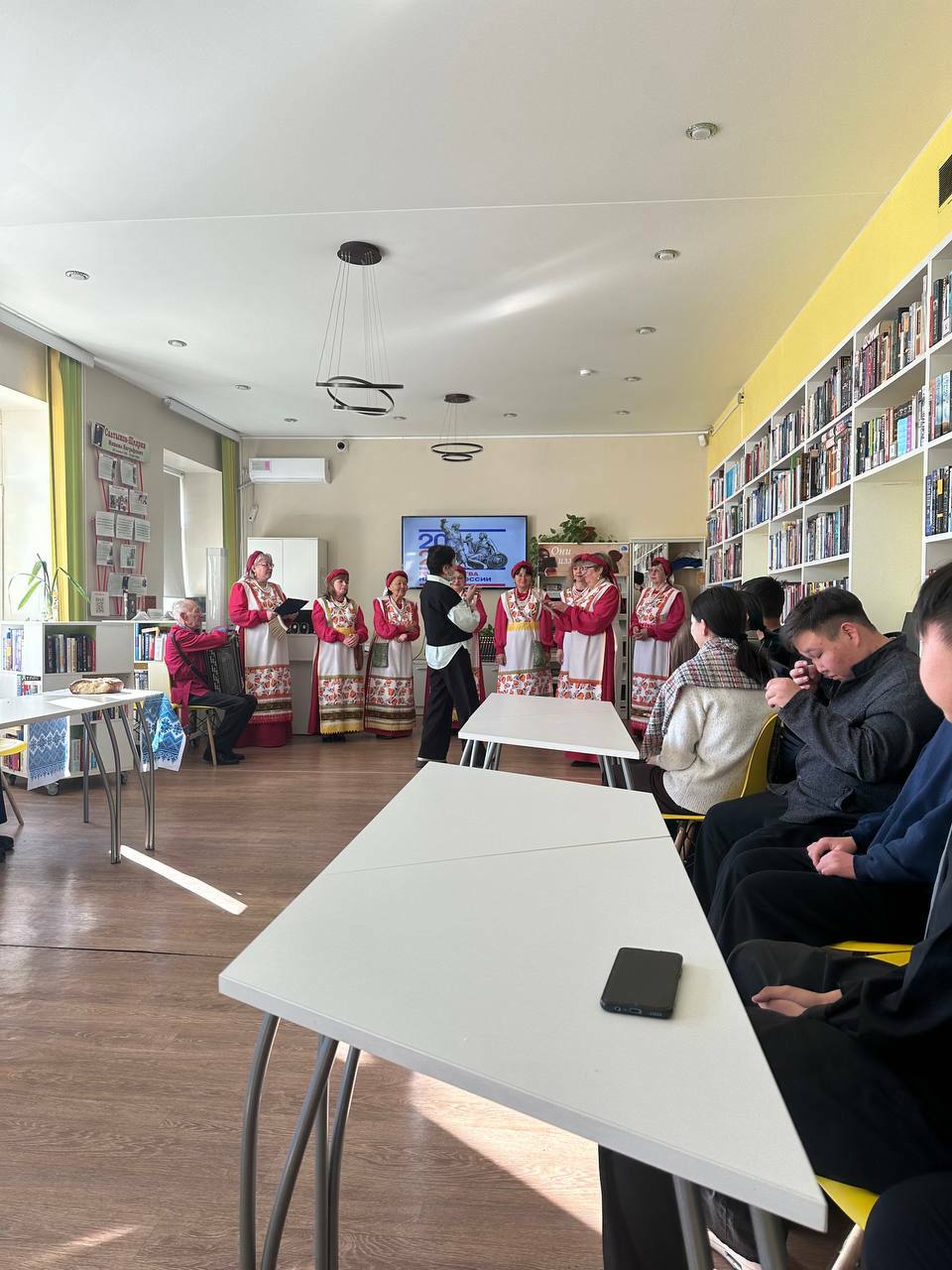 6 февраля в рамках года 2026 - "Единство народов России" на базе районной библиотеки прошла Музыкальная гостиная - встреча с русской народной песней. Ее участниками были Народный ансамбль русской песни "Рябинушка" и гости - студенты музыкального отделения Агинского педагогического колледжа им.Б.Ринчино.