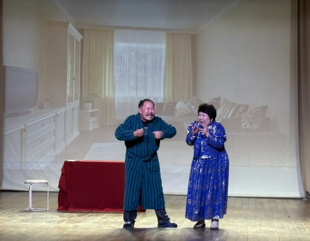 Искрометная комедия, где в главных ролях играли Жаргалан Базаргуруев и Аягма Гомбожапова, не оставили равнодушными поклонников театра. Творческий тандем Ж.Базаргуруева и А.Гомбожаповой известны своими яркими образами, и в этот раз на 37-м Межмуниципальном конкурсе им. Д.Батожабая «Театральная весна» они стали обладателями премии «Лучшая мужская роль» и «Лучшая женская роль» среди Народных театров сельских поселений.