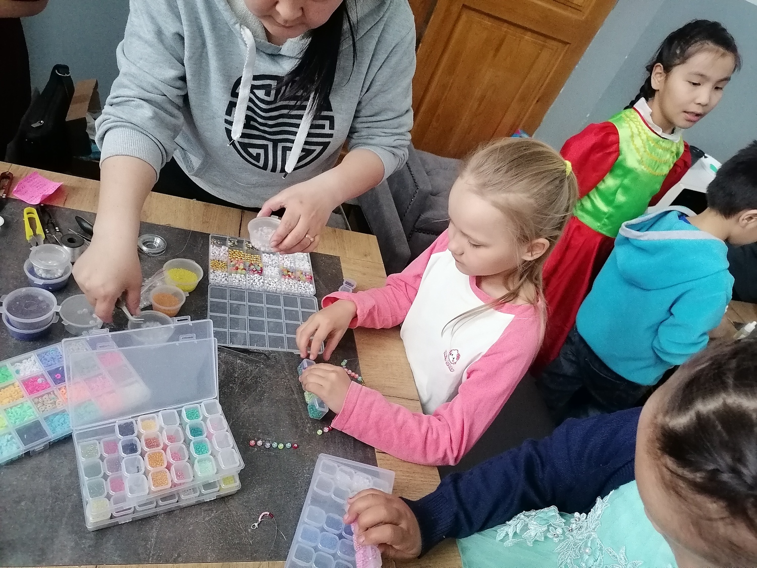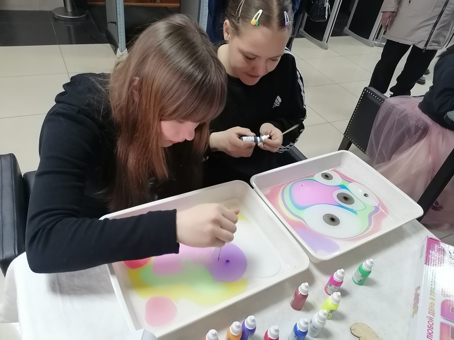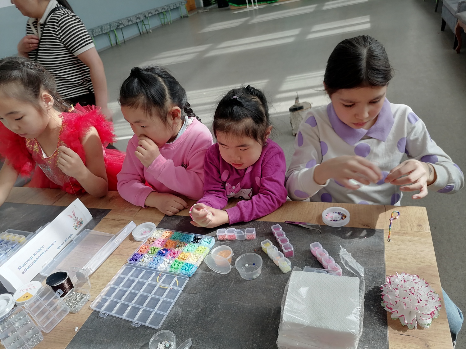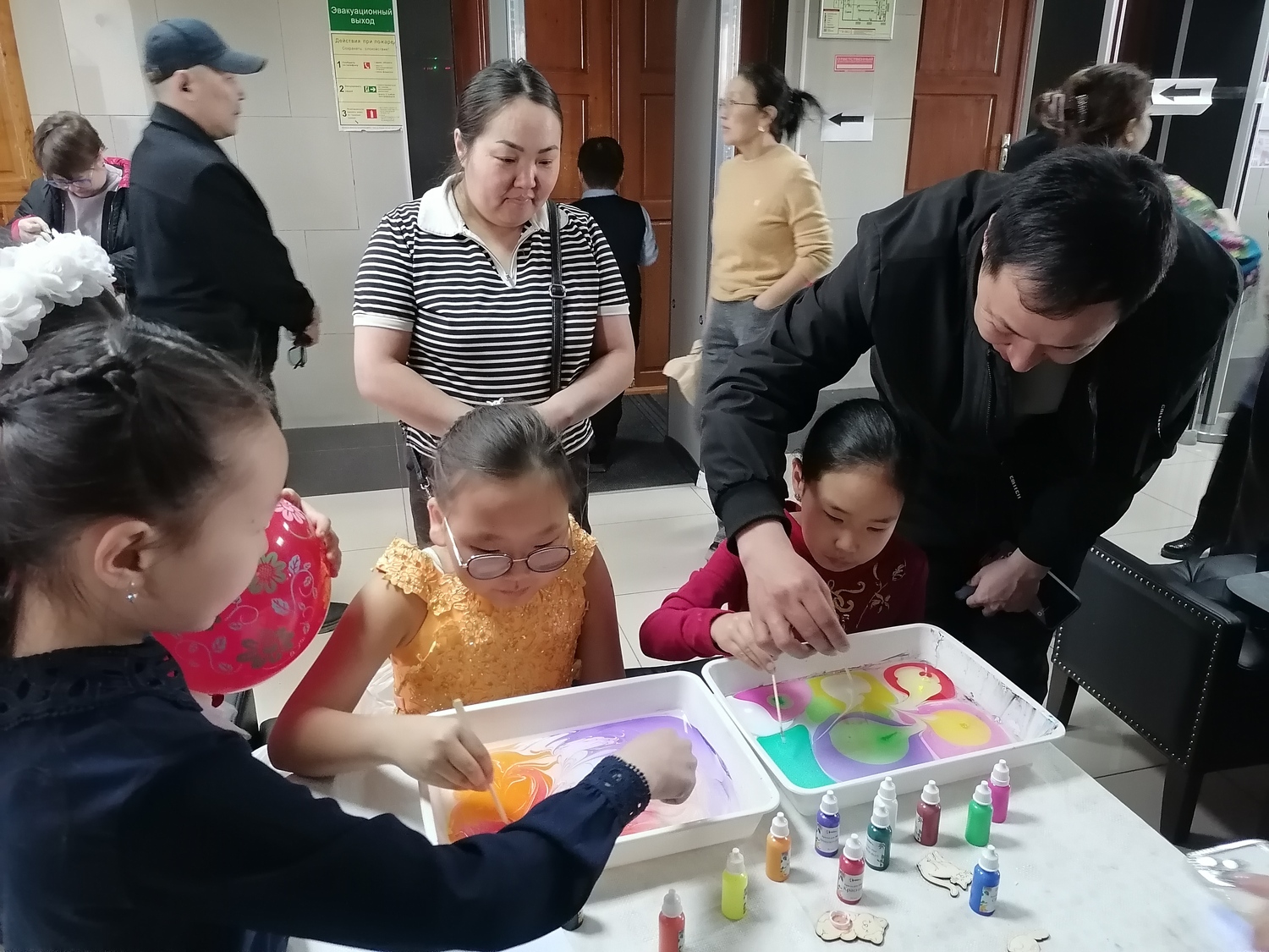Ребята с удовольствием разбрелись по мастер классам: одни увлечённо красили пасхальные яйца, другие осваивали искусство мыловарения, создавая тематические фигурки, а третьи учились делать объёмные открытки.