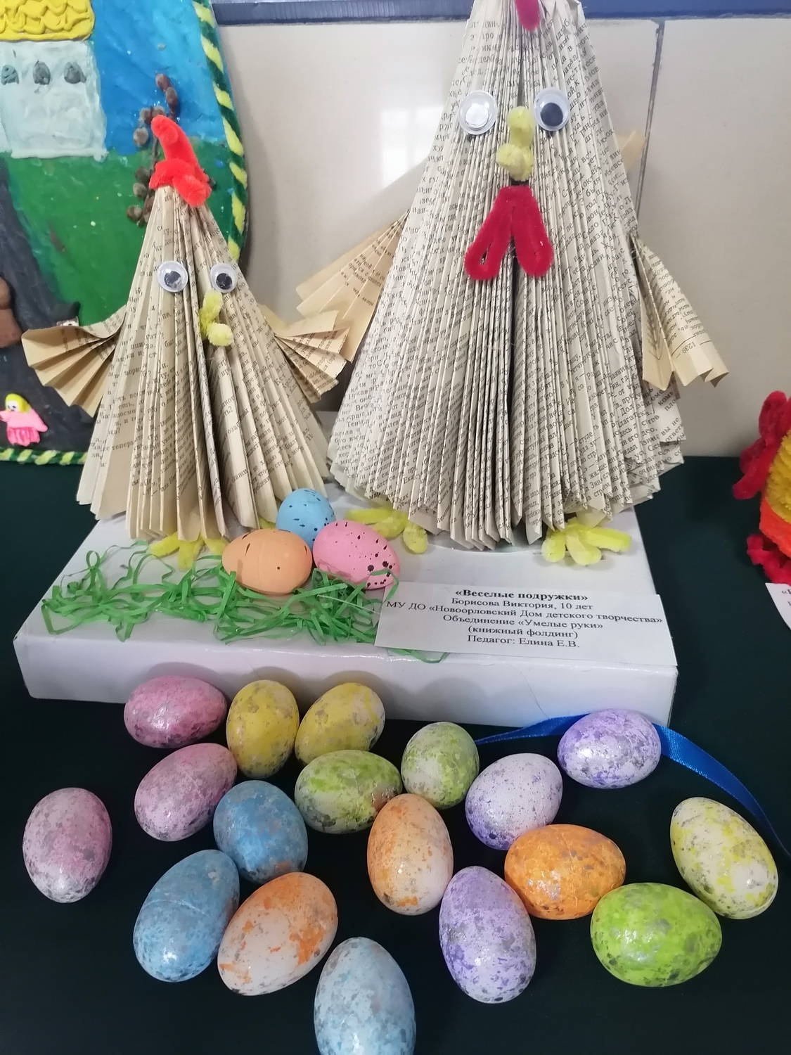 В фойе дома культуры — царит настоящее пасхальное волшебство! Представлена выставка декоративно‑прикладного искусства, подготовленная воспитанниками МУ ДО "Новоорловского Детского дома творчества" к празднику Пасхи.
