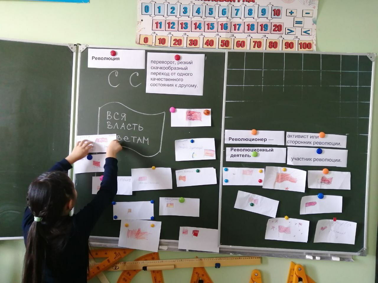 Ребята внимательно смотрели фильм, составляли слова, восстанавливали факты, относящиеся к истории праздника 7 ноября. Каждый человек должен знать историю своей Родины, гордиться подвигом своего народа, сохранять память о тех великих днях.