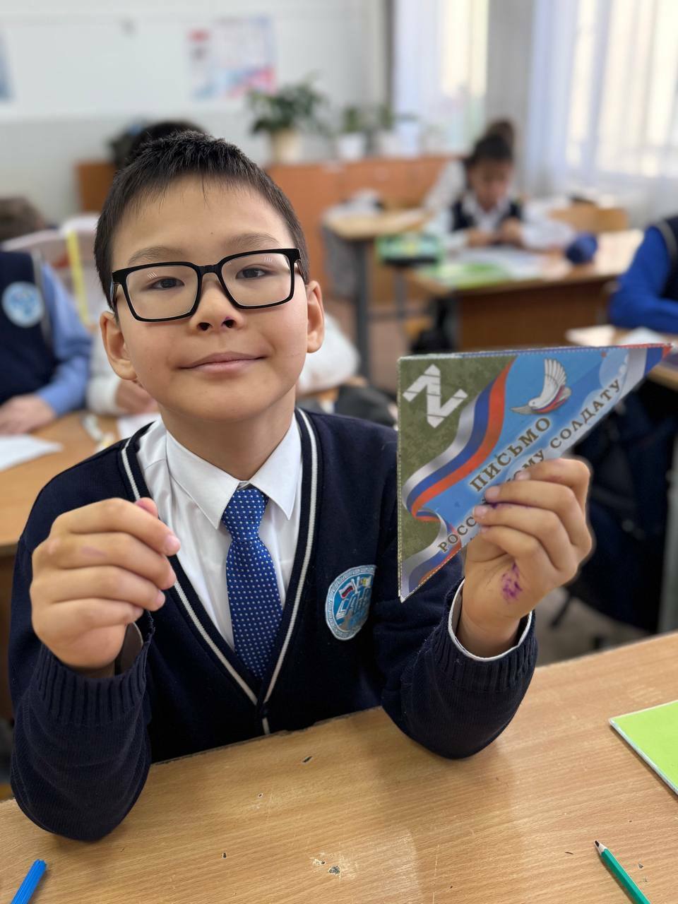 Сегодня в рамках акции дети написали письма, чтобы выразить свою благодарность и поддержку бойцам СВО и поздравить их с праздником Дня защитника Отечества.