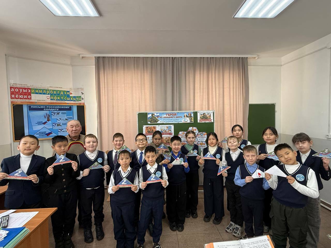 Ребята из 3 "Б" класса АмСОШ изготовили своими руками поздравительные открытки и написали трогательные письма. В этом помогли классный руководитель В. Цыбенова и волонтер штаба волонтерского отряда "Открытые сердца" Д.Дондоков.