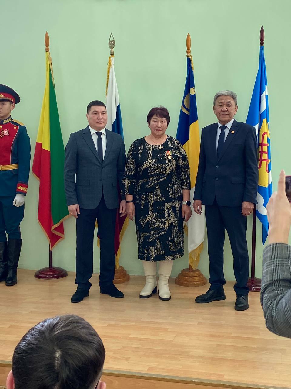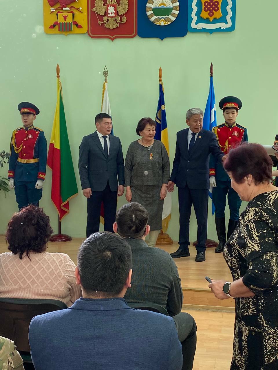 Награды вручали исполняющий обязанности заместителя председателя Правительства Забайкальского края, руководитель Администрации Агинского Бурятского округа Ананда Цыдыпович Дондоков и глава Агинского муниципального округа Насак Валерьевич Бабужапов.