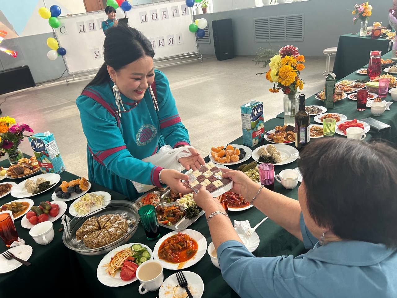 Творческий коллектив дома культуры подготовили праздничную музыкальную программу для дорогих гостей. В течение всего праздника слышали в свой адрес искренние пожелания доброго здоровья, долголетия, хорошего настроения. Музыкальные подарки прозвучали от солистов Районного центра культуры и досуга, участниц коллектива «Уянга», "Тумэн Жаргалан", "Уулзалга" прозвучали всем известные песни, которые зрители с удовольствием слушали и подпевали.