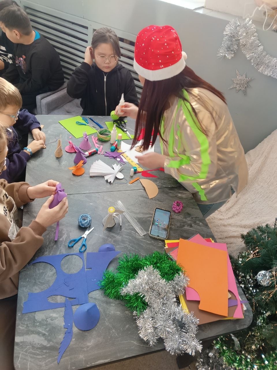 Ребята с большим увлечением создавали своих первых крылатых вестников праздника.Особый подарок для зрителей преподнёс народный ансамбль «Рябинушка», исполнивший традиционные рождественские колядки и народные песни, создав по-настоящему тёплую и душевную атмосферу.Кульминацией праздника стал долгожданный визит Дедушки Мороза.