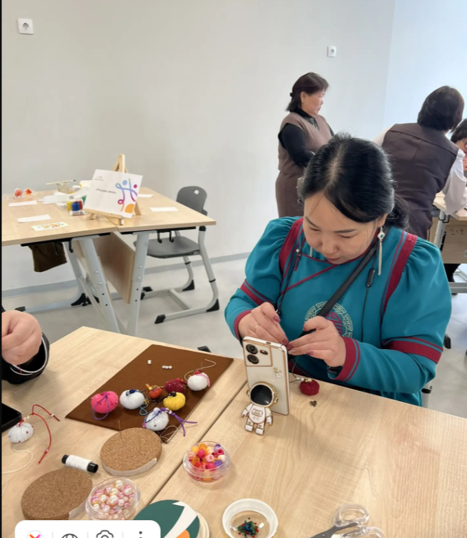 Мастер-классы:Бисероплетение — создание красивых украшений из бисера.Изготовление брелков — создание уникальных брелков своими руками.Изготовление плетей — освоение традиционных техник плетения.Эбру — рисование на воде с последующим переносом на бумагу.Рисунок на дощечке — создание картин на деревянных дощечках.Валяние шерсти — создание изделий из шерсти методом валяния.Буряад зураг — изучение и создание традиционных бурятских рисунков.