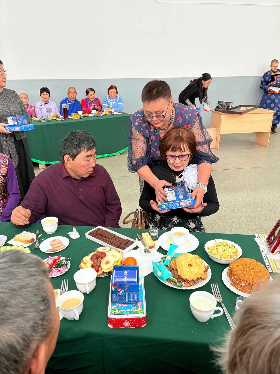 На вечере - встрече присутствовали почётные гости: начальник управления пенсионного фонда в Агинском округе Балданова Валентина Жимбаевна, председатель Совета ветеранов муниципального района «Агинский район» Цыдендоржиев Рыгзын Цыренович, заместитель председателя общественной организации инвалидов городского округа «Посёлок Агинское» Любовь Доржиевна Доржиева.
